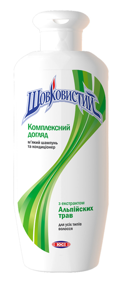 Шелковистый с экстрактом альпийских трав для всех типов волос. В состав шампуня входят экстракты: арники, горечавки, сосновой хвои, василька, зверобоя, мелиссы и можжевельника. Шампунь оказывает тонизирующее, стимулирующее и регенерирующее действие на кожу, улучшает структуру волос.