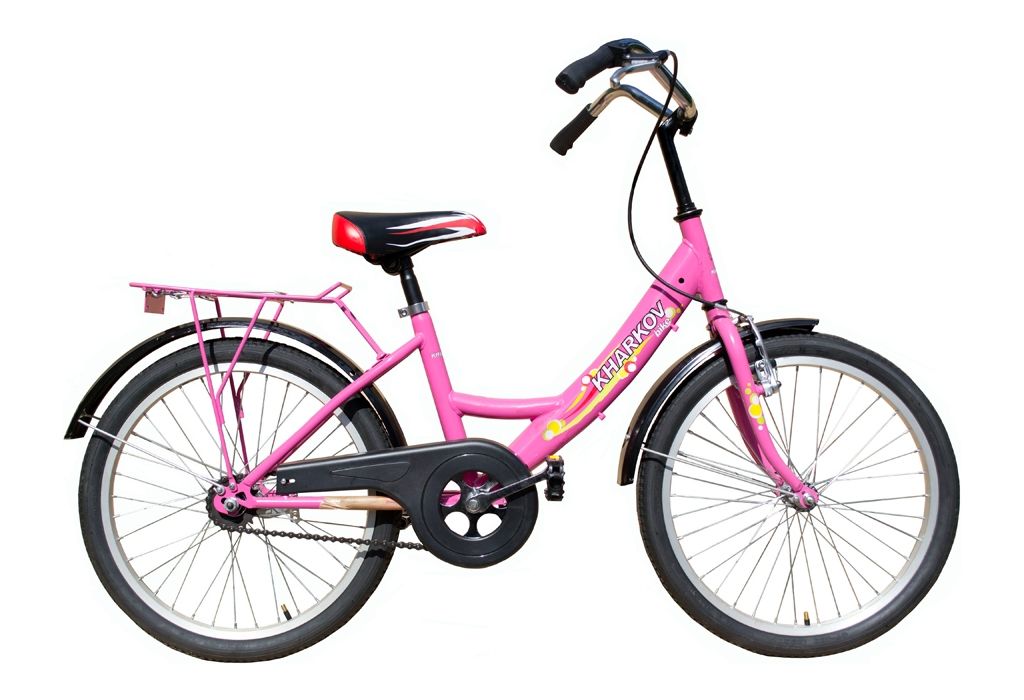 Подростковый велосипед, рассчитанный на езду по дорогам с ровным покрытием. Модель 56 разработана для девочек. Рама розового цвета, изготовлена из стали, и имеет геометрию с заниженной верхней трубой – это поможет юным велосипедисткам удобно садиться на велосипед и слезать с него. Диаметр колес - 20". Велосипед оснащен дополнительным передним тормозом клещевого типа, багажником, а также большими крыльями, которые ограждают ребенка от летящей из-под колес грязи и воды. Цепь велосипеда в целях безопасности прикрыта пластиковым щитком.